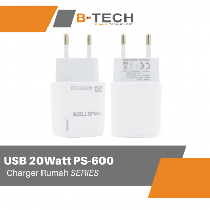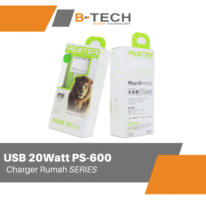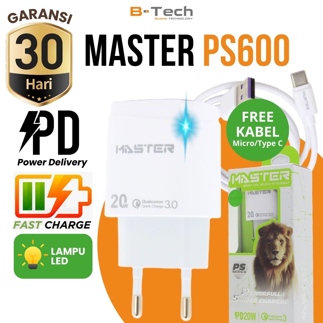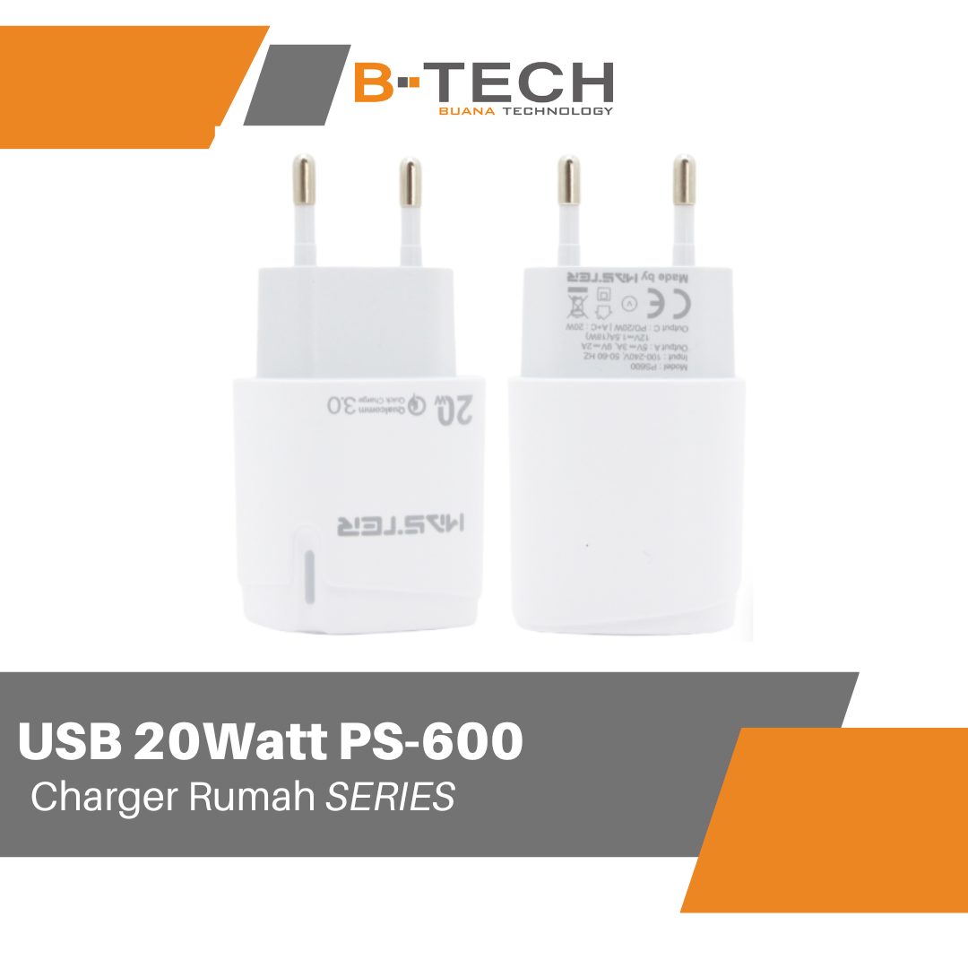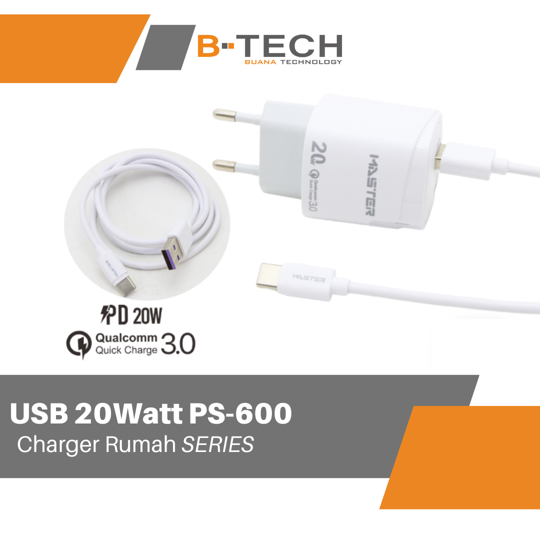 Charger 20W PD QC 3.0 Super Fast Charging USB C Wall Charger 2 Port USB Adaptor Quick Charger Android IOS MASTER PS600 Garansi 30 Hari