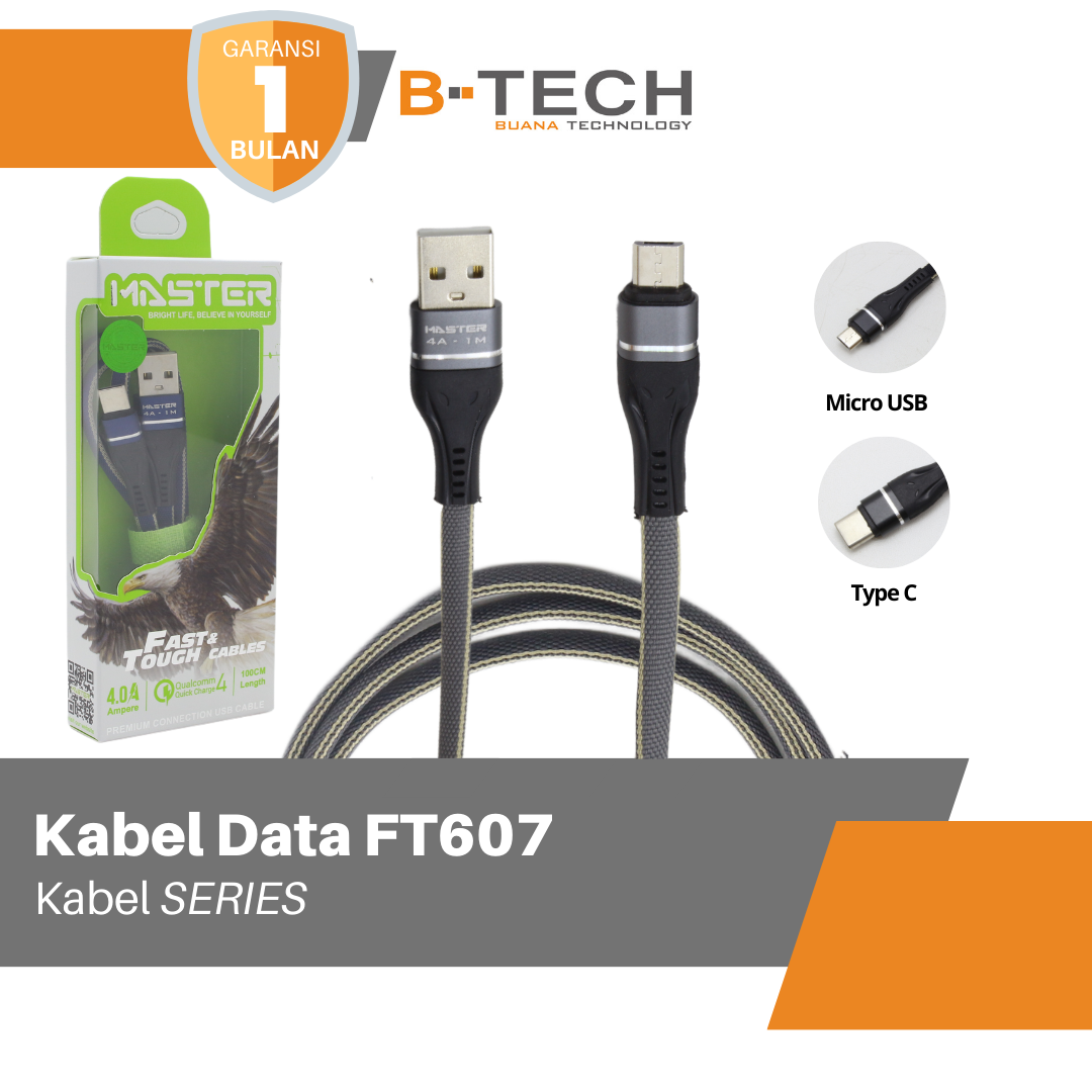 Kabel Data Fast Charging 4A Type C PD Micro USB iOS Lightning Android 1M MASTER FT607 Garansi 30 Hari