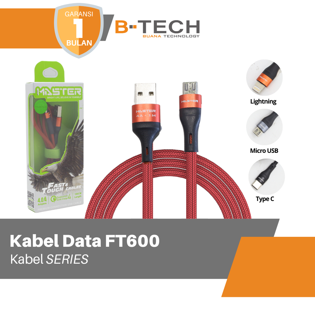 Kabel Data Fast Charging 4A Type C PD Micro USB iOS Lightning Android 1M MASTER FT600 Garansi 30 Hari