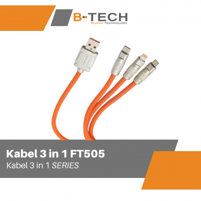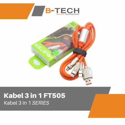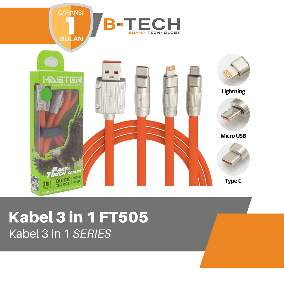Kabel Data 3 in 1 Fast Charging Kabel 1.2Meter HP Tipe C Micro iOS Lightning MASTER FT505 Garansi 30 Hari