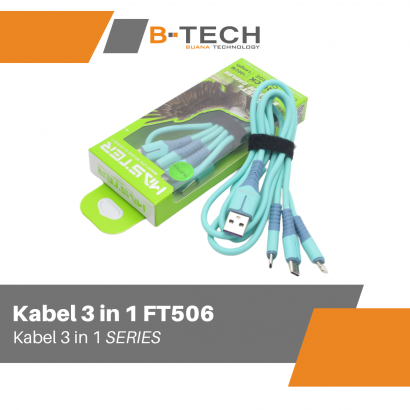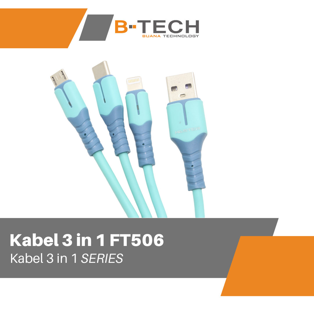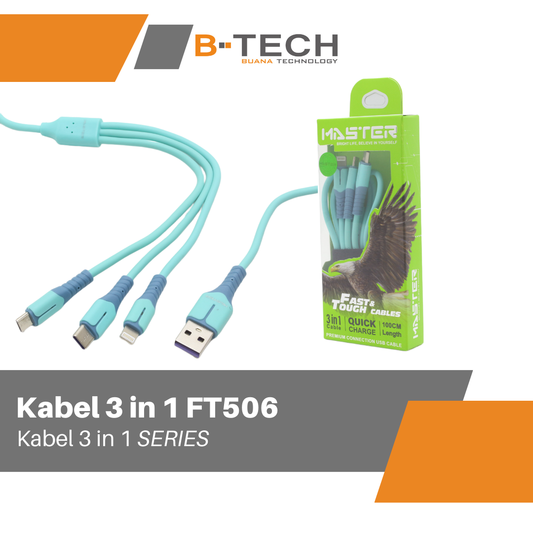 Kabel Data 3 in 1 Fast Charging Kabel 1.2Meter HP Tipe C Micro iOS Lightning MASTER FT506 Garansi 30 Hari